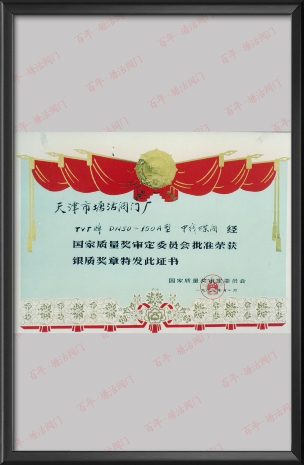 1988年DN50-150A型中線蝶閥銀質(zhì)獎?wù)?/h3>